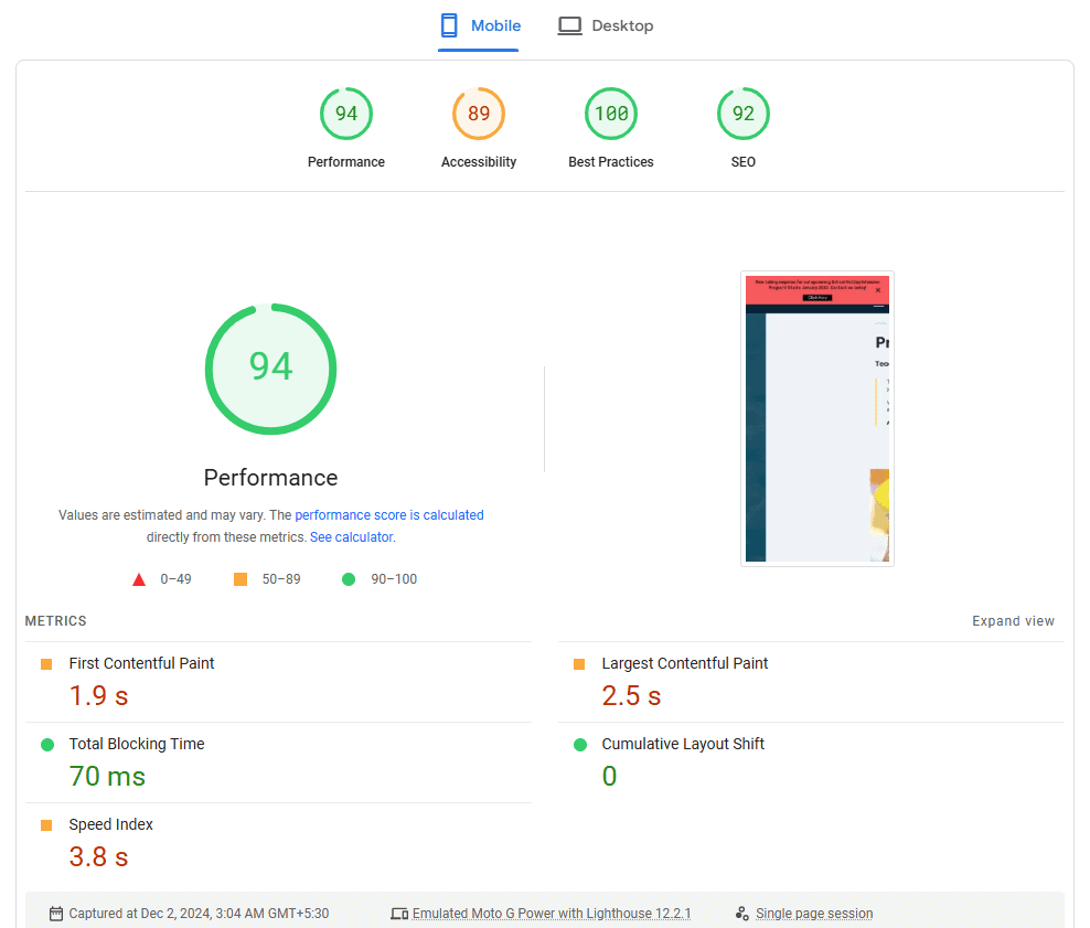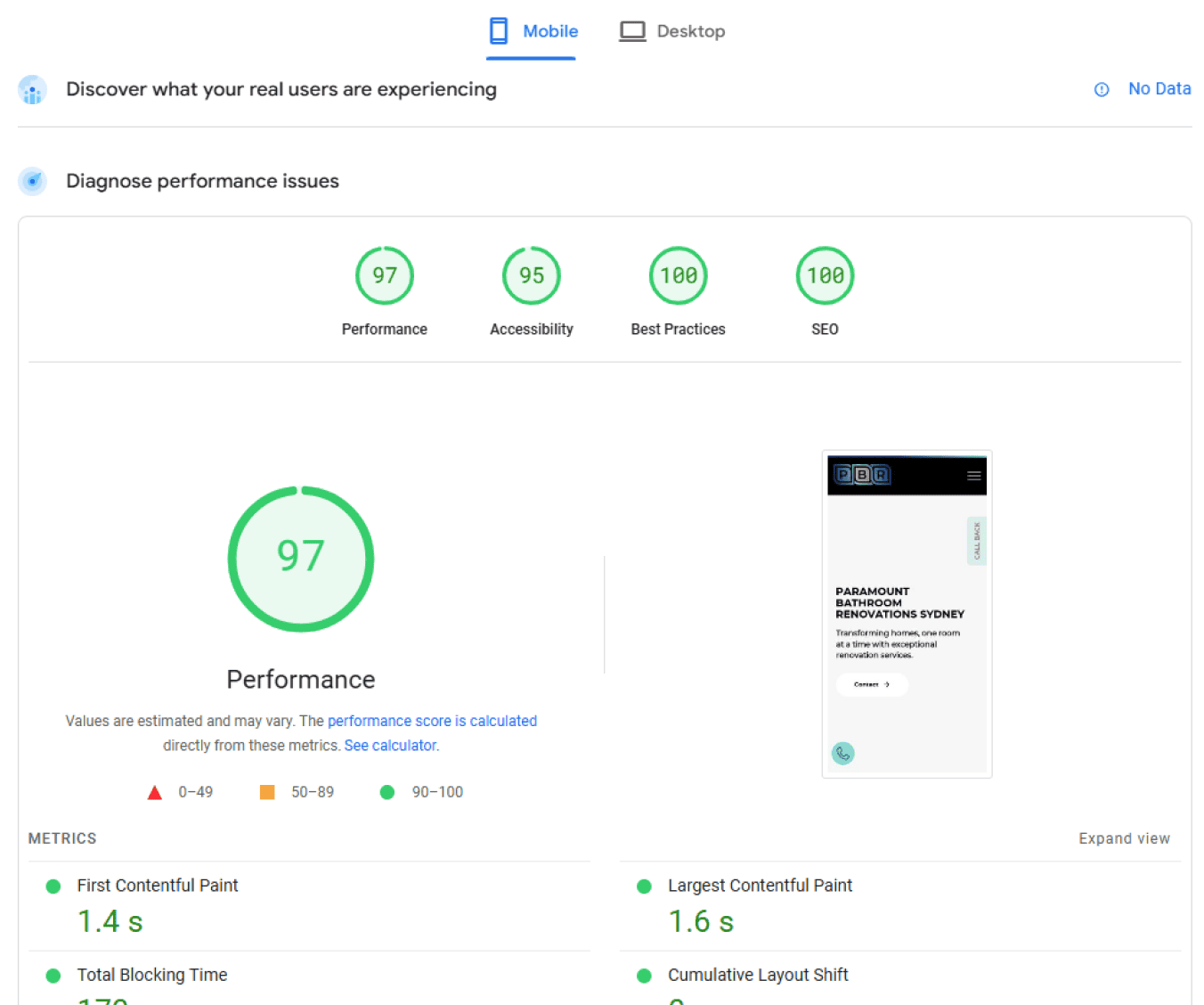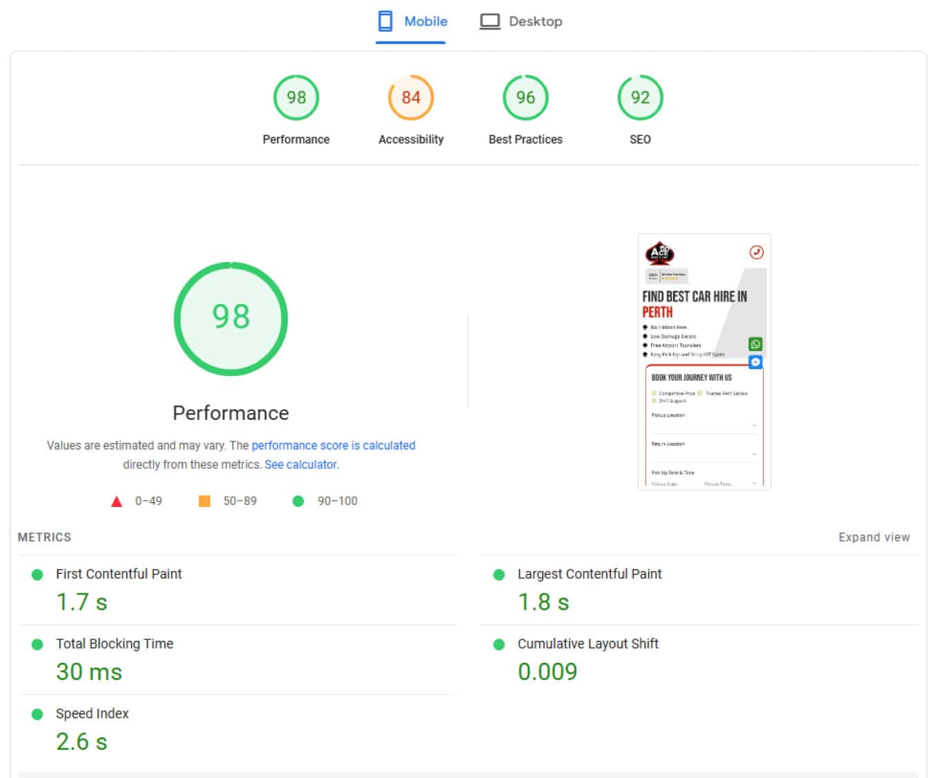 PageSpeed score